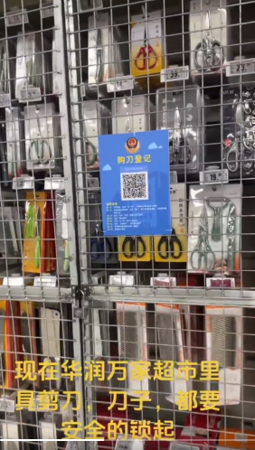 5月8日,深圳华润万家超市剪刀和一切刀具都锁起来,需要在派出所实名登记后购买。