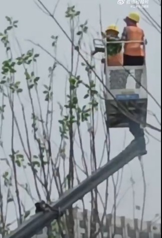 6月26日,河南郑州,网曝郑东万象城门口有人用摇臂给枯树绑绿叶,网友质疑这是形象面子工程。6月27日,祭城路街道办事处工作人员表示,该行为并非街道办所为,而是商场方面的装饰,商场即将开业,枯树不是很美观,所以装饰了一下。街道办同时表示,他们正在就此事与商家进行沟通和跟进处理。——枯树绑绿叶,这操作跟秃山喷绿漆一个毛病没十年脑血栓都干不出这事。