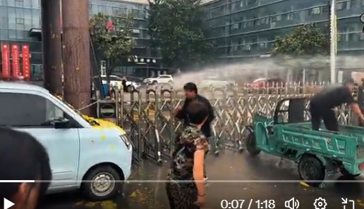 6月26日,山东临沂凯旋医院,保安用自来水喷射维权的死者家属,试图将他们赶走,吸引了一群小学生围观。据悉,起因是医院治死了一名因骨折入院的老太太,其家属为讨说法连日在医院门口烧纸钱。有网友表称,这家医院在过去十年内,已经发生了多起医疗事故。