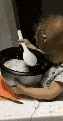 这孩子几天没吃饭啊,大米都能端着锅“匡匡炫,”你天蓬元帅转世啊?