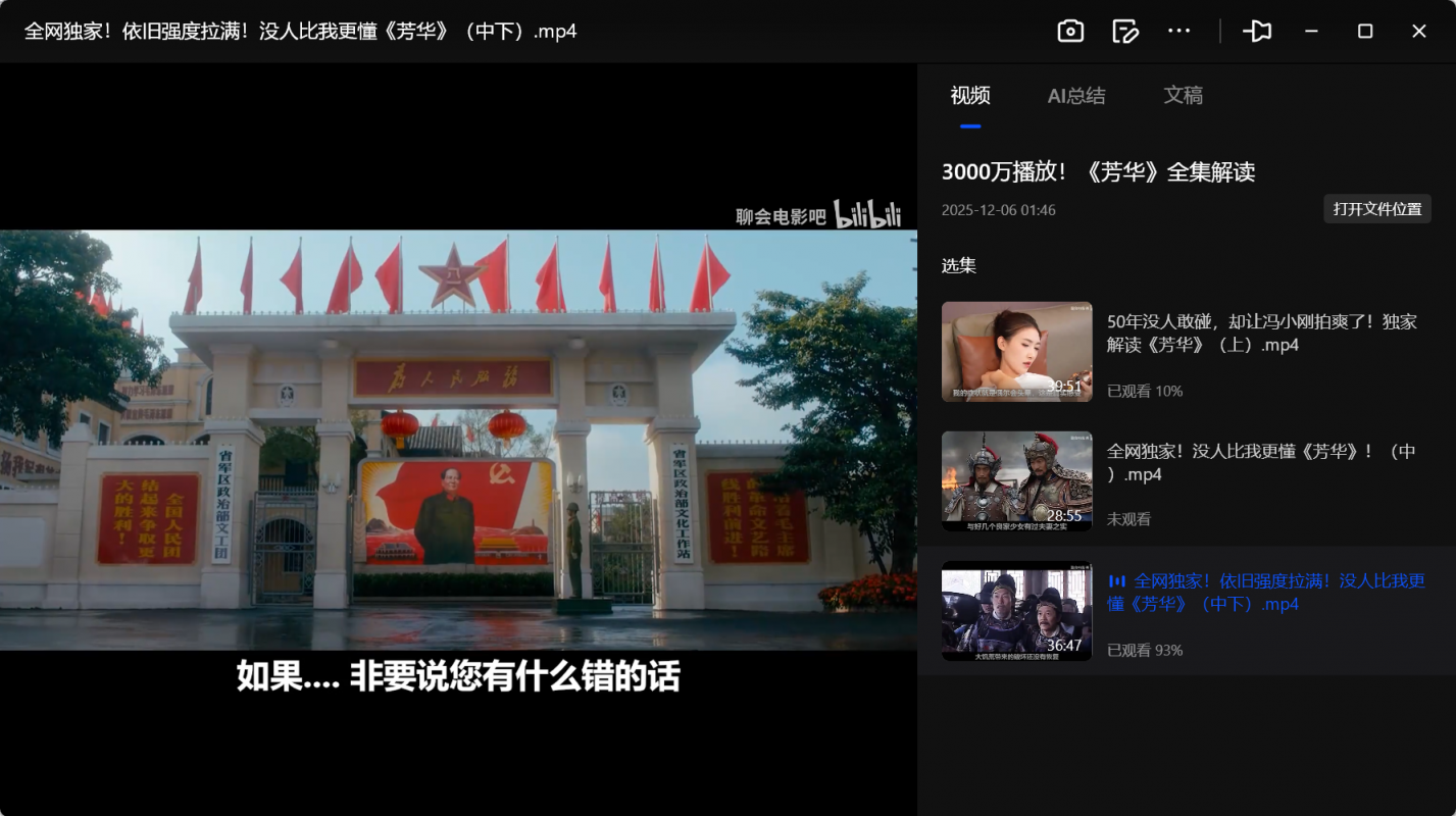 据多家报道,本月(2025年11月底),B 站 UP 主 聊会电影吧 发布了对《芳华》的“三集解说”视频。该系列借助影片画面、台词与情节,对电影所反映的时代、人物命运与历史背景进行再解读——并不止步于对电影本身,而延伸为对特定历史与社会现实的政治/历史隐喻分析。