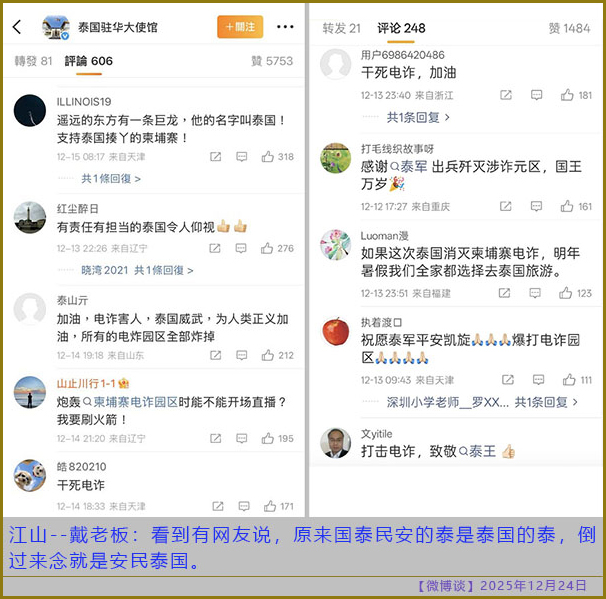 [微博谈 2025/12/24] 原来国泰民安的泰是泰国的泰
