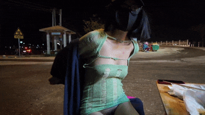 【15】人气露出女神,超大胆【cikaimoon】绿色毛衣逛街,早上学校门口,中午到乡下,晚上路边摊,刺激