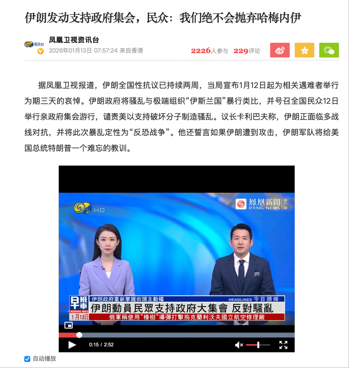 - 伊朗召见中国大使抗议其主权争议岛屿表态