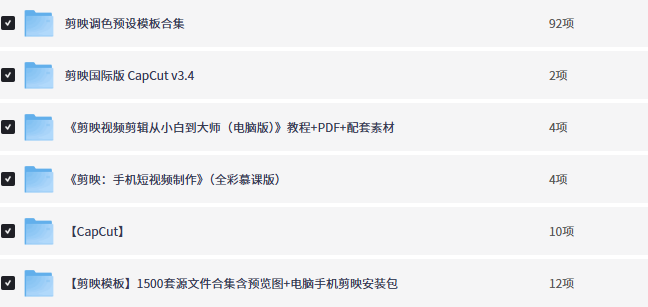 [剪映全链路资源包]全网剪映Win+Mac+Android教程、素材、模板、课程汇总,含价值3W的训练营、保姆教程,思路及技巧详细解说